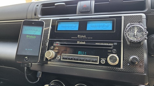 チラっと車両を拝見しましたところ、「あれ?ただモノではない!?」感があり、中を見せてもらいましたところ、オーディオ本体部分は、往年の名機、マッキントッシュ!