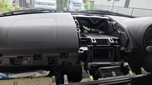 やはり中には何もありませんが、オーディオ用ハーネスやラジオアンテナ線は存在しました。