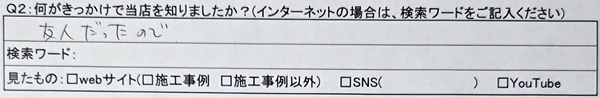 Q2:何がきっかけで当店を知りましたか?(インターネットの場合は、検索ワードをご記入ください)