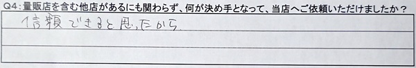 Q4:量販店を含む他店があるにも関わらず、何が決め手となって、当店へご依頼いただけましたか?