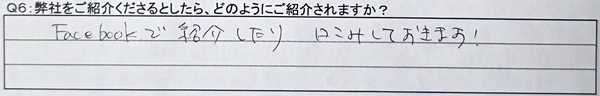 Q6:弊社をご紹介くださるとしたら、どのようにご紹介されますか?