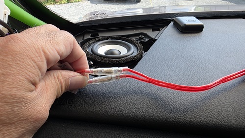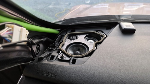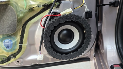 ダッシュボード上とフロントドアのスピーカー交換で、フロントスピーカーの交換が完了しました。