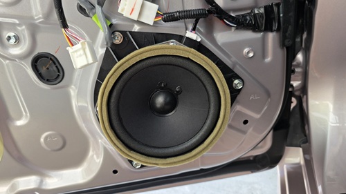 フロントと同じスピーカーを同じ施工方法で取り付けしていますので、前後の音質や音色も揃います。