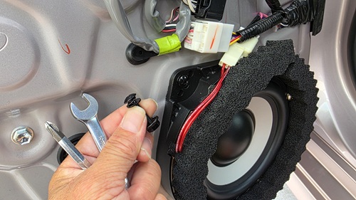ドア内装を元に戻すと、フロントドアスピーカー交換が完了します。