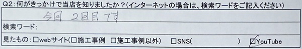 Q2:何がきっかけで当店を知りましたか?(インターネットの場合は、検索ワードをご記入ください)