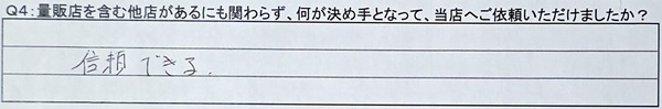 Q4:量販店を含む他店があるにも関わらず、何が決め手となって、当店へご依頼いただけましたか?