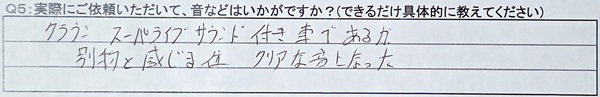 Q5:実際にご依頼いただいて、音などはいかがですか?(できるだけ具体的に教えてください)