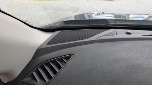 ダッシュボード上スピーカーグリルへ、音の通りを良好にする施工を追加。