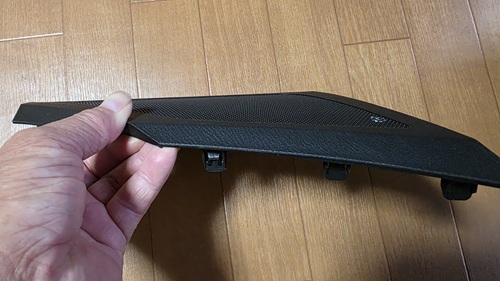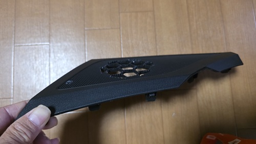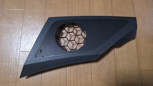 穴明け加工前のグリルでは、車両へ装着するとスピーカーの姿が見えません。