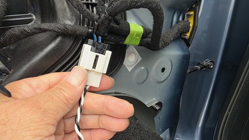 オーディオ音質向上目的のスピーカー交換を実施中の、マツダCX-5(KE型)標準オーディオ付車ドアスピーカー接続