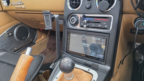 ボディソニックやヘッドレストスピーカー、ツィーター等の純正機材を流用し、市販ディスプレイオーディオを取り付け後の、ユーノスロードスター(NA型)センソリーサウンドシステム付車オーディオ全景HDMI表示