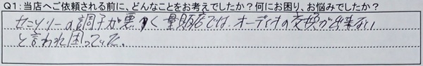 A1:センソリーの調子が悪く、量販店では、オーディオの交換が出来ないと言われ困っていた。