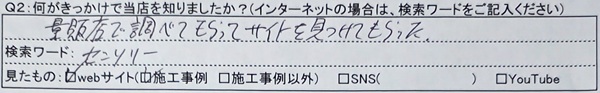 Q2:何がきっかけで当店を知りましたか?(インターネットの場合は、検索ワードをご記入ください)