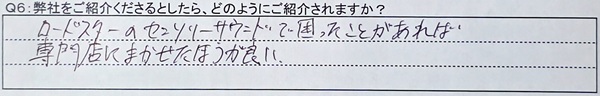 A6:ロードスターのセンソリーサウンドで困ったことがあれば、専門店にまかせた方が良い。