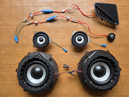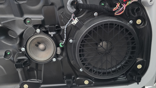 ドアにある中音用と低音用の音質向上スピーカー交換後です。