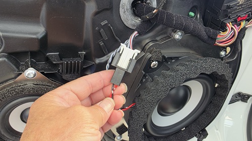 音質向上ドアウーハーの接続も、純正スピーカーと同じコネクタを使用しています。