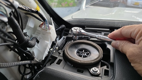 ツィーターを固定したグリルを取り付けして、各部内装を元に戻すことで、ダッシュボード上ツィーター交換が完了します。
