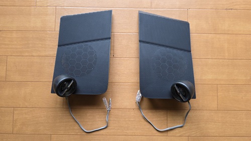 ダッシュボード上グリルを外すと、純正ツィーターの姿が見えます。