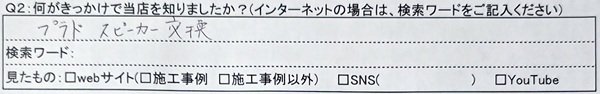 Q2:何がきっかけで当店を知りましたか?(インターネットの場合は、検索ワードをご記入ください)