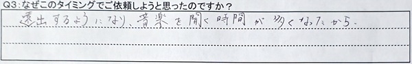 A3:遠出するようになり、音楽を聞く時間が多くなったから。