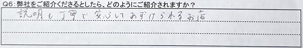 Q4:量販店を含む他店があるにも関わらず、何が決め手となって、当店へご依頼いただけましたか?