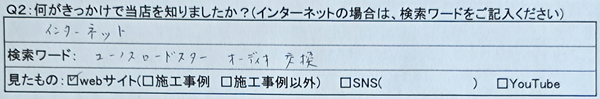 Q2:何がきっかけで当店を知りましたか?(インターネットの場合は、検索ワードをご記入ください)