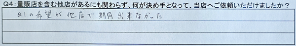 Q4:量販店を含む他店があるにも関わらず、何が決め手となって、当店へご依頼いただけましたか?