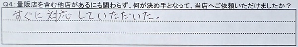 Q4:量販店を含む他店があるにも関わらず、何が決め手となって、当店へご依頼いただけましたか?