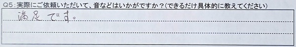 Q5:実際にご依頼いただいて、音などはいかがですか?(できるだけ具体的に教えてください)