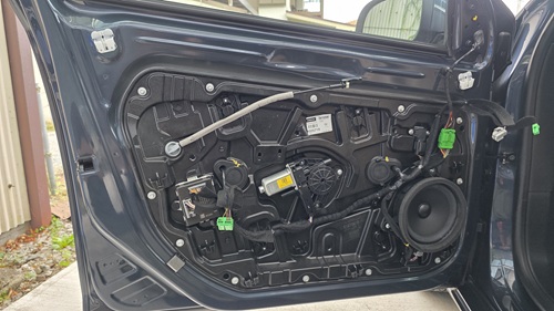 ドア内装の裏面から、高音専用スピーカーであるツィーターが固定されています。