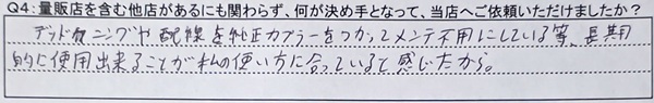 Q4:量販店を含む他店があるにも関わらず、何が決め手となって、当店へご依頼いただけましたか?