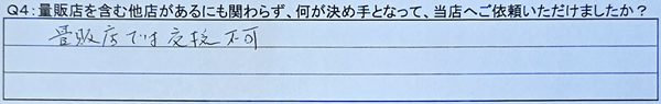 Q4:量販店を含む他店があるにも関わらず、何が決め手となって、当店へご依頼いただけましたか?