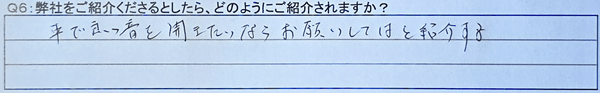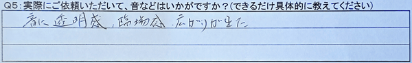 Q5:実際にご依頼いただいて、音などはいかがですか?(できるだけ具体的に教えてください)