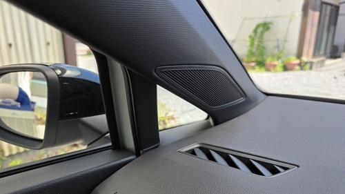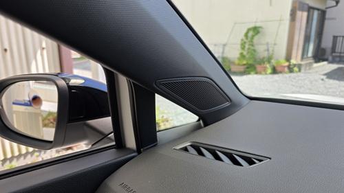 Aピラーのツィーターは、運転席や助手席に向けた角度付け固定を実施しています。