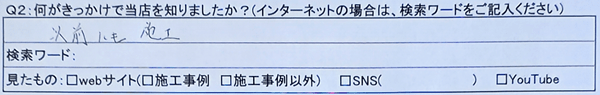 Q2:何がきっかけで当店を知りましたか?(インターネットの場合は、検索ワードをご記入ください)