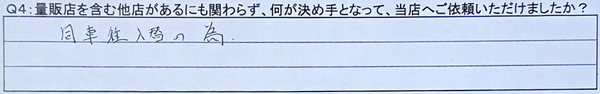 Q4:量販店を含む他店があるにも関わらず、何が決め手となって、当店へご依頼いただけましたか?