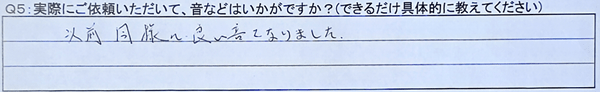 Q5:実際にご依頼いただいて、音などはいかがですか?(できるだけ具体的に教えてください)